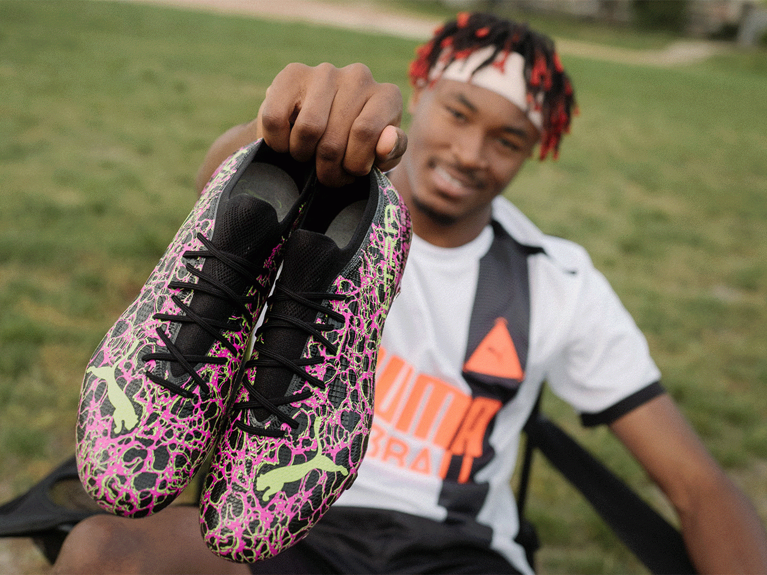Celebrating the launch of the Origin pack, PUMA’s exciting next-gen talent travelled back to their roots to re-connect with their origins. Meeting with promising young players from their local areas or their childhood clubs to inspire a new generation to dream big and write their own story. The ULTRA 1.3 Origin edition will be worn by trailblazing PUMA stars Mohamed Simakan, Todd Cantwell, Timothée Pembélé, Gabriel Veron, Glódís Viggósdóttir, Yunus Musah and Mohammed Kudus.