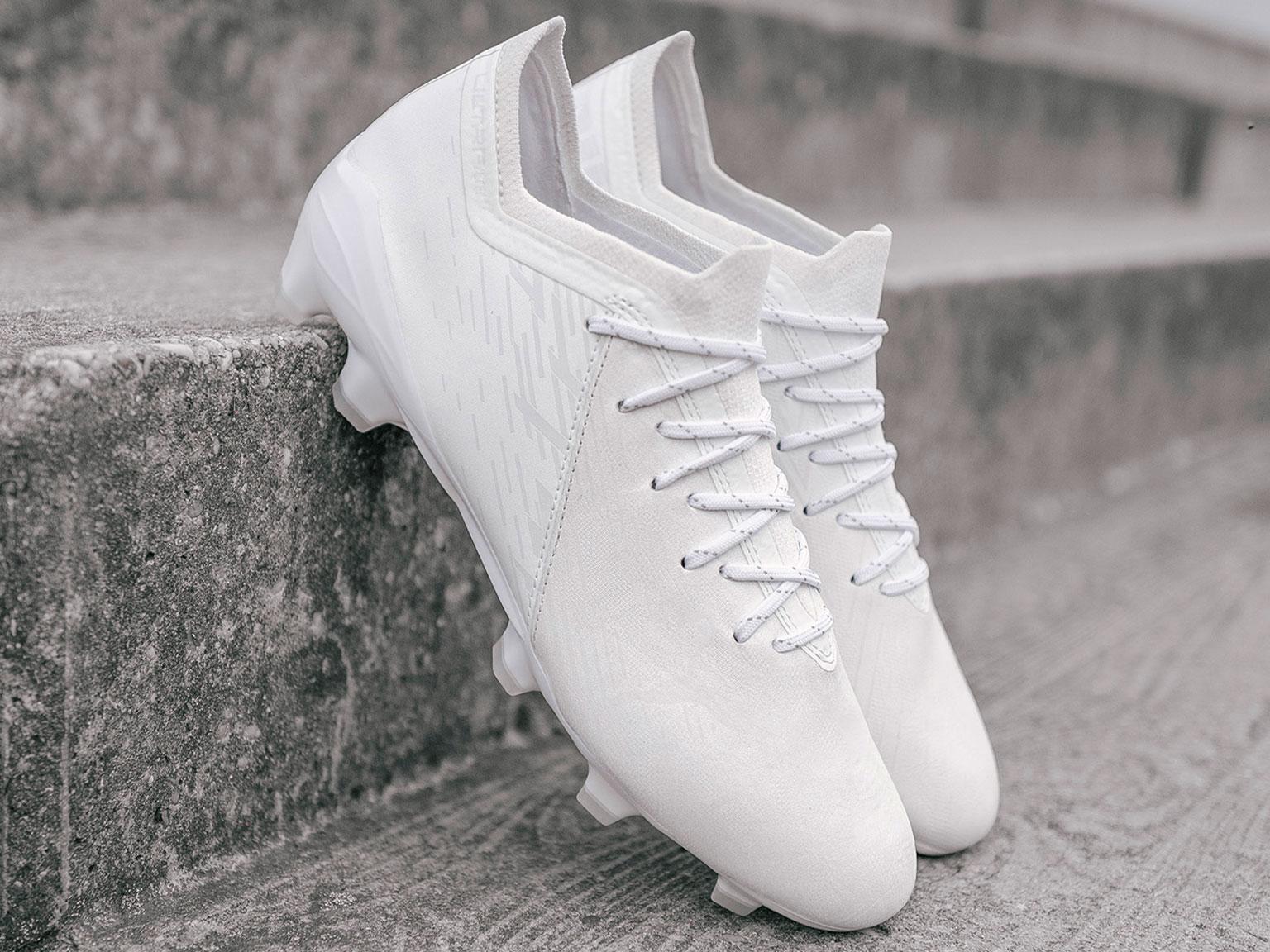 Engineered for lightning speed, the ULTRA 1.2 will See Them Later. Super-soft meets ultra-fast with the ULTRA Lazertouch edition providing superior stability, durability and traction for explosive forward motion. The white leather upper combines with a lightweight Peba SpeedUnit outsole, inspired by PUMA’s track running heritage. The soleplate combines subtle spikes in the forefront and V-shaped studs configured for devastating speed and acceleration.