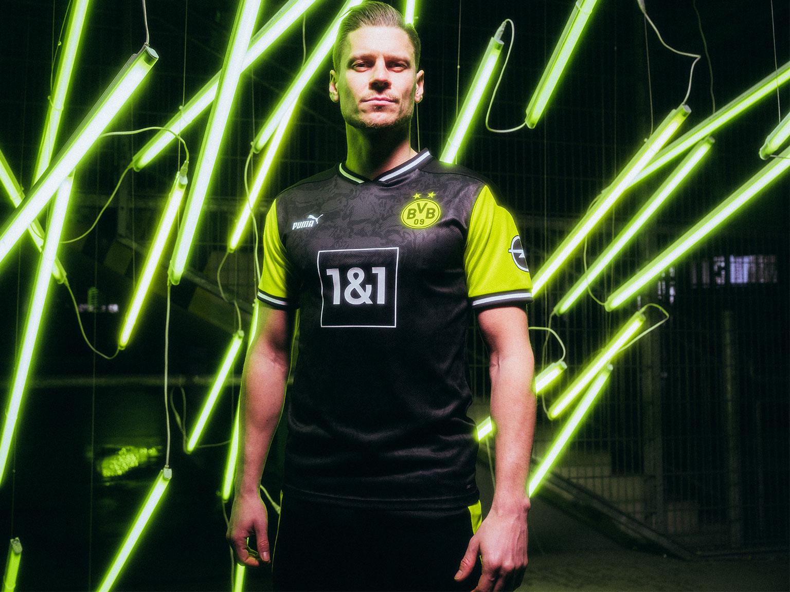 Sports company PUMA has today launched an exclusive special edition retro Borussia Dortmund jersey in black and neon yellow in honor of their success in the 90’s, during which time BVB captured the UEFA Champions League and two German Championships.