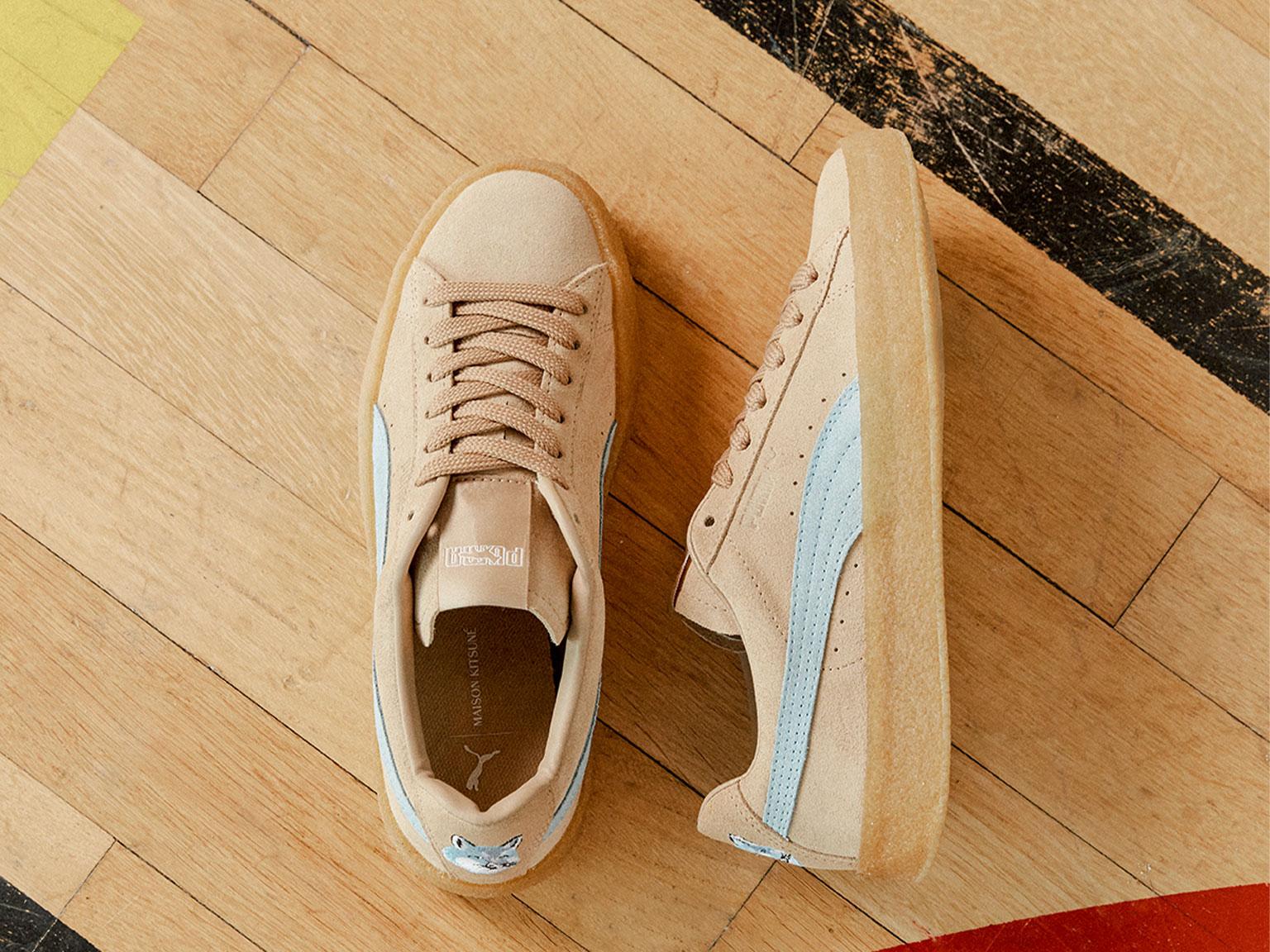 The PUMA x MAISON KITSUNÉ collection stays true to its clean, aesthetic style and extends its Japanese-French heritage from the first season onto its second. Designs take inspiration from Japanese streetwear and are elevated with touches of French elegance. This simple yet elevated streetwear collection includes apparel, footwear, and accessories.