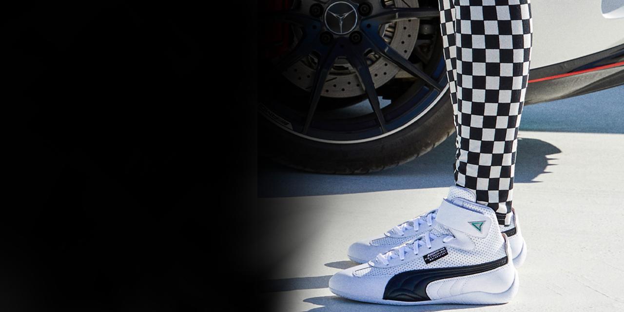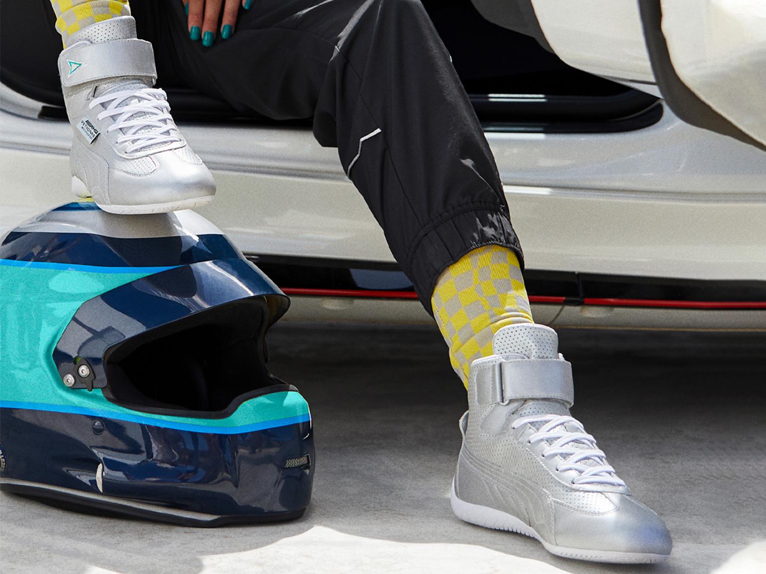 Besides the engagement in racing PUMA puts a lot of effort into fulfilling the fashionable requests of today´s women motorsport enthusiasts. Filling the gap from track to street. The women’s motorsport street collection is evolving every season female-only lines matching the blend of style and speed. The Mercedes-AMG Petronas F1 Team Speedcat Mid L silhouette is a re-launch of the iconic Speedcat with an extraordinary midcut which is made for your fancy look on and off the track.