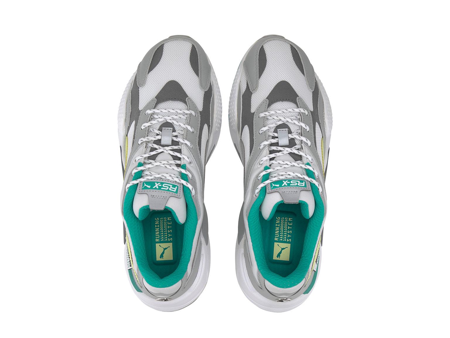 For this collection, PUMA also reimagines the RS, originally named after the innovative midsole “running system” developed in the 1980s. The Mercedes-AMG Petronas Formula One Team RS-X³ combines old-school cool with a cutting-edge motorsport design twist.