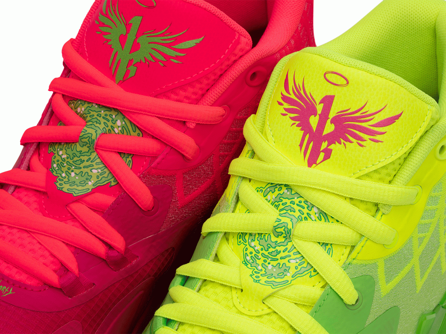 MB.01 was co-designed by LaMelo, incorporating his personal style throughout the shoe from bold color choices to intricate unique details. The three new silhouettes set to release in February include fresh bright colors with the same artistic outline of flames shooting down from the ankle collar and the word “Rare” stamped on the shoe’s rubber bottom. Officially licensed from Warner Bros. Consumer Products, a highlight of the new drop includes limited-edition shoes and apparel inspired by Adult Swim’s hit series, “Rick and Morty.”