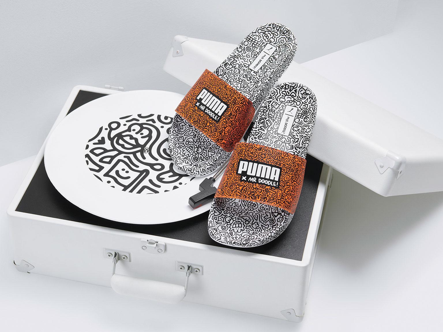 The Sky LX Low, RS-2K, Cali Wedge, Leadcat 20 and Mile Rider are given a playful look for the PUMA X Mr.Doodle collection. The RS-2K X Mr.Doodle features embellishments like asymmetric lacing, doodles on the midsole, and a doodle arrow below the laces. The Mile Rider X Mr.Doodle features a sporty mesh upper with colorful overlays and doodle graphics on the midsole.