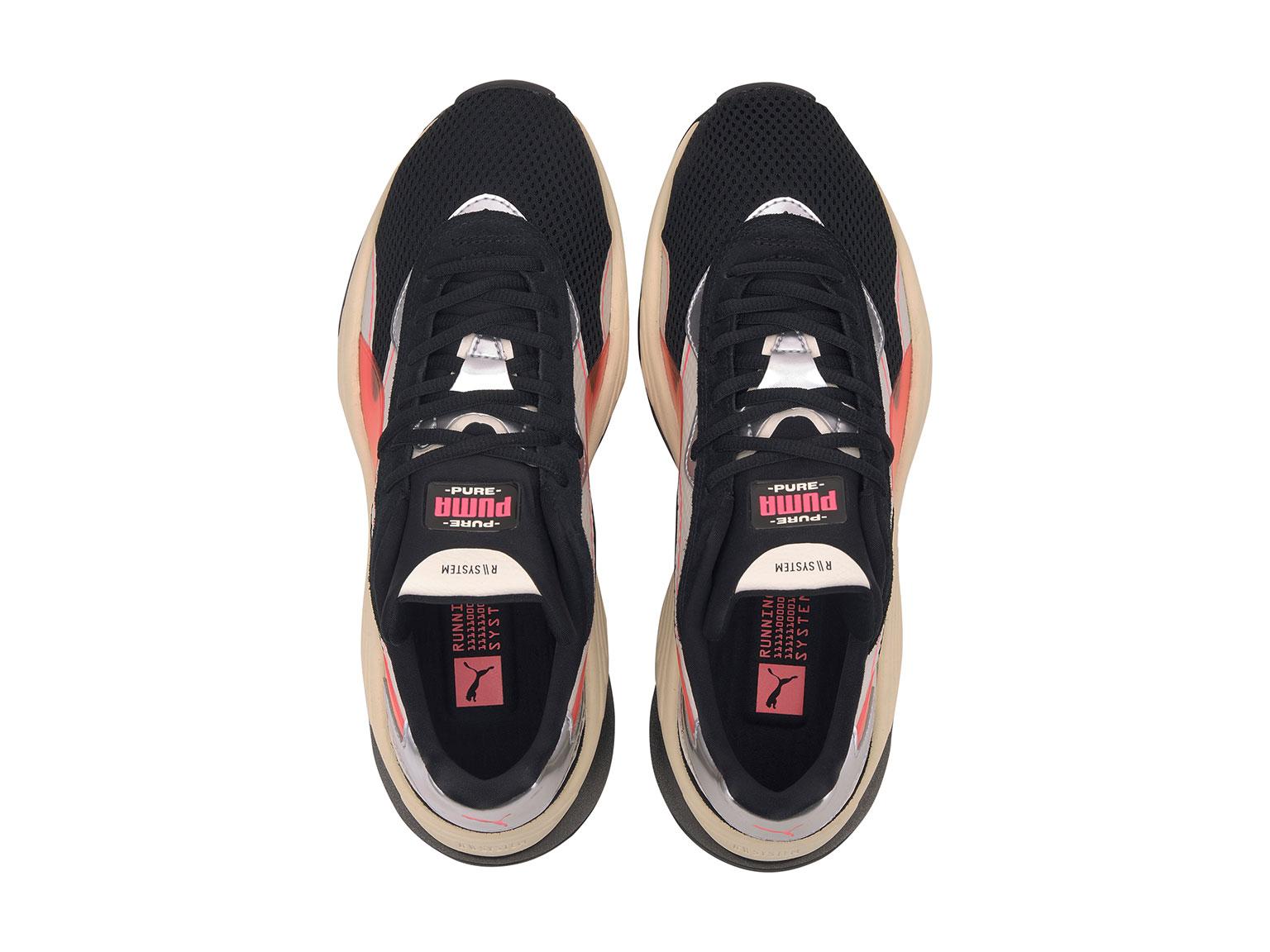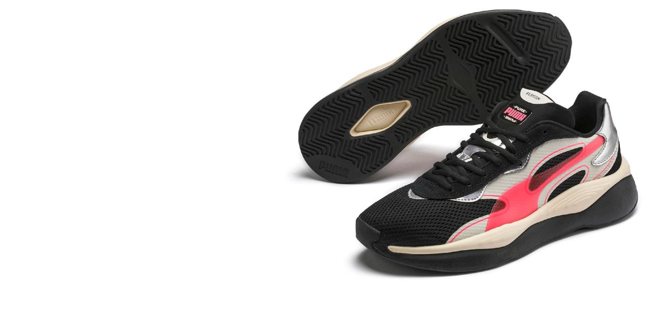 The shoe blends materials together with suede eyestay and heel overlays on top of a mesh upper. A bold touch is added from the metallic synthetic leather details on the tongue and heel and a semi-translucent pink TPU Formstrip. Outfitted with RS technology, the RS-Pure Fusion brings together comfort and style.
