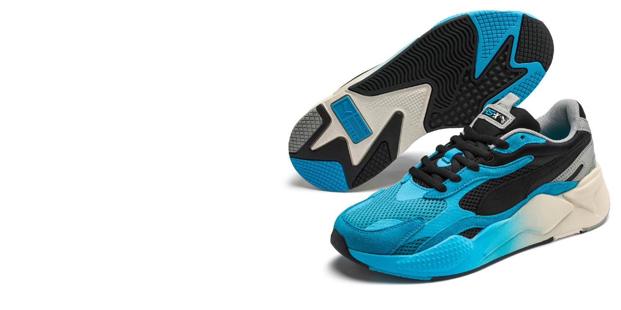The RS design is taken it to an extra, thrice-exaggerated form by stripping the silhouette down to the basics then building it up with stronger material mixes and colors inspired by the games we play in our extra time. RS-X3 Move refers to fast movements in gaming and the gradient spray on the midsole speaks for itself. Look for PUMA’s RS-X3 Move from April 2.