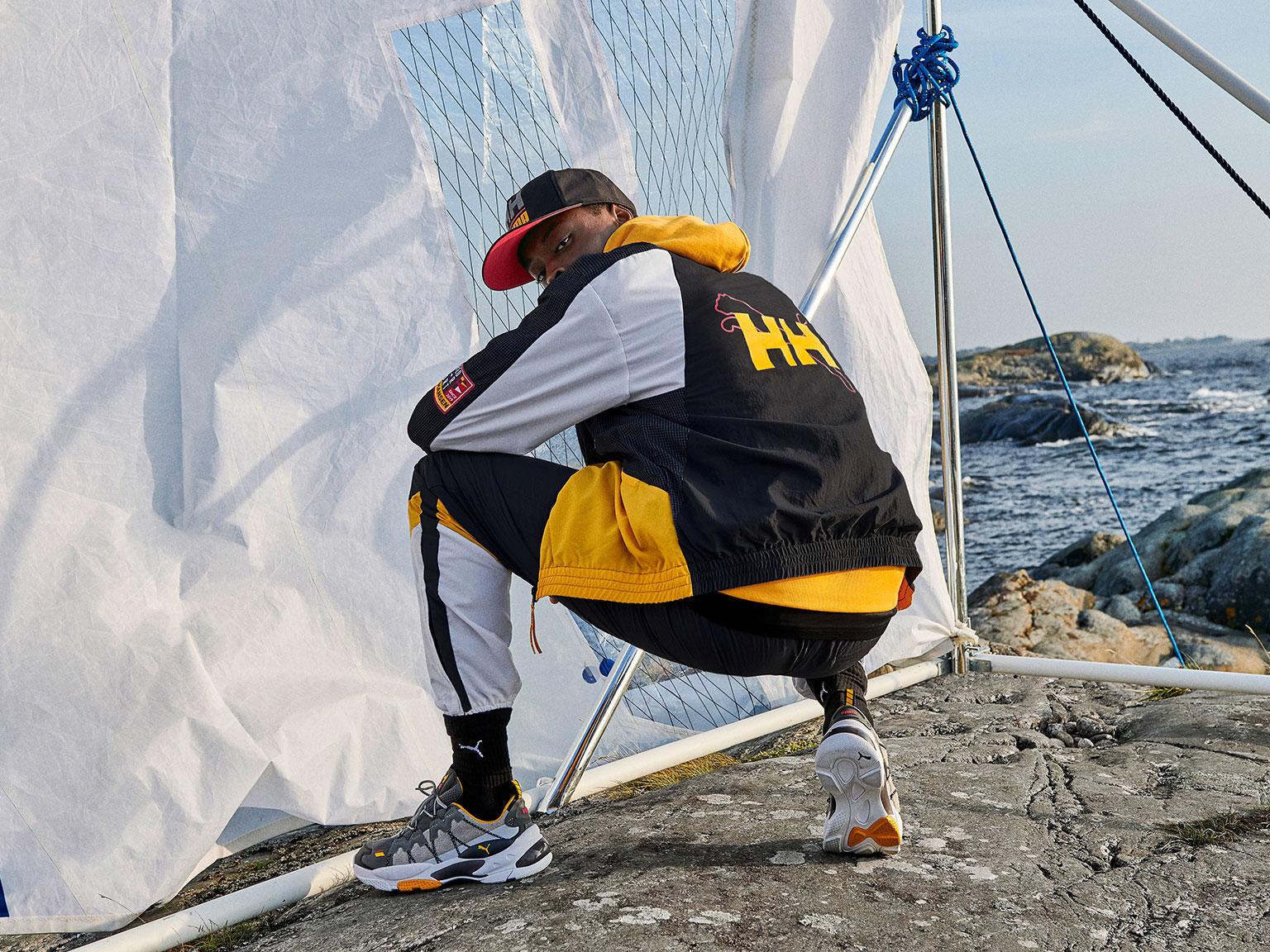 Through daring designs, HELLY HANSEN’s technical and protective outerwear left its mark on 1990’s hip-hop culture and streetwear. Continuing to celebrate vibrant 90’s street culture, the second PUMA x HELLY HANSEN collection once again pays tribute to the heritage of both PUMA and HELLY HANSEN through materials, color combos and graphics while incorporating a fresh twist of technical details and modern elements.
