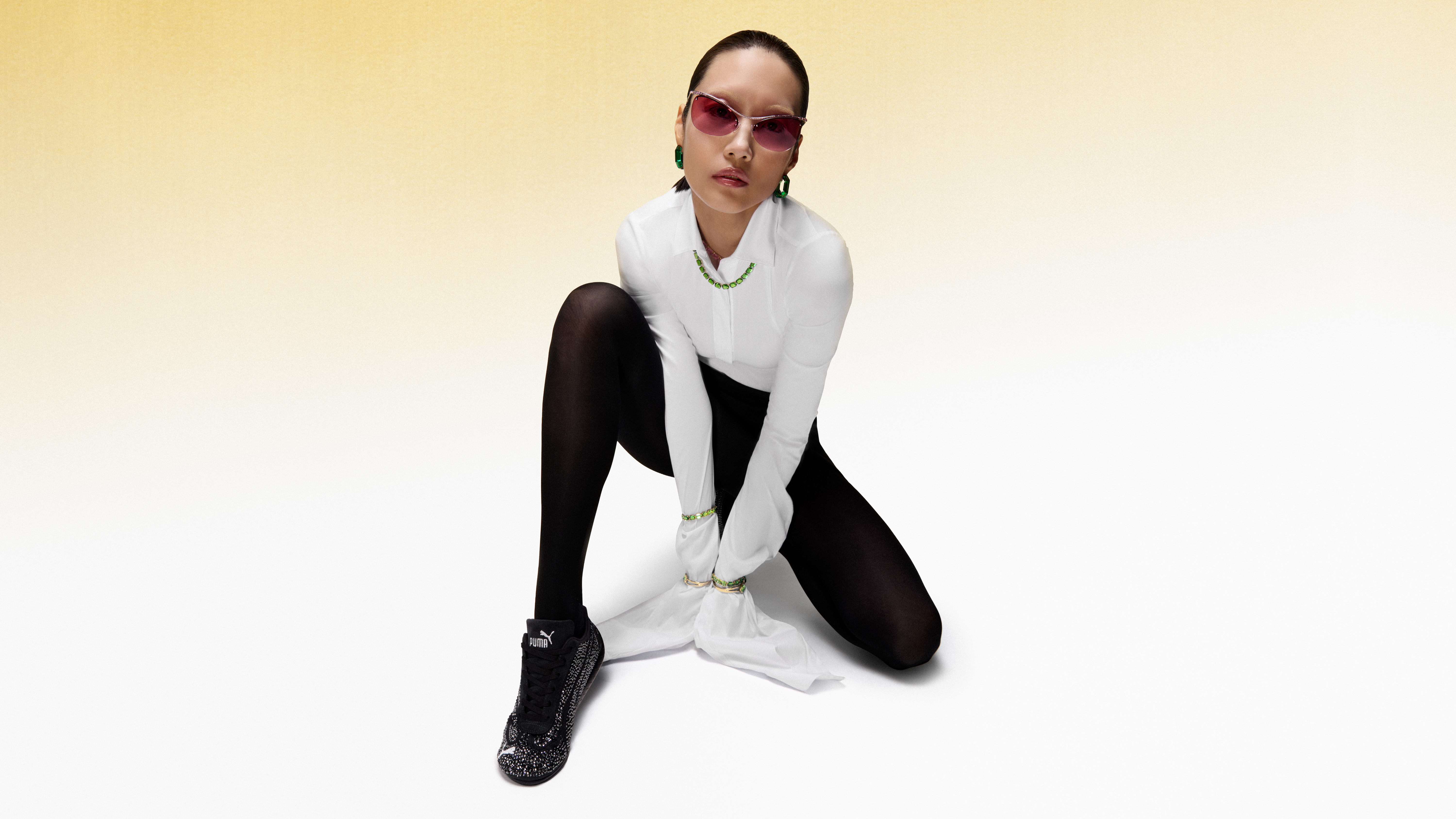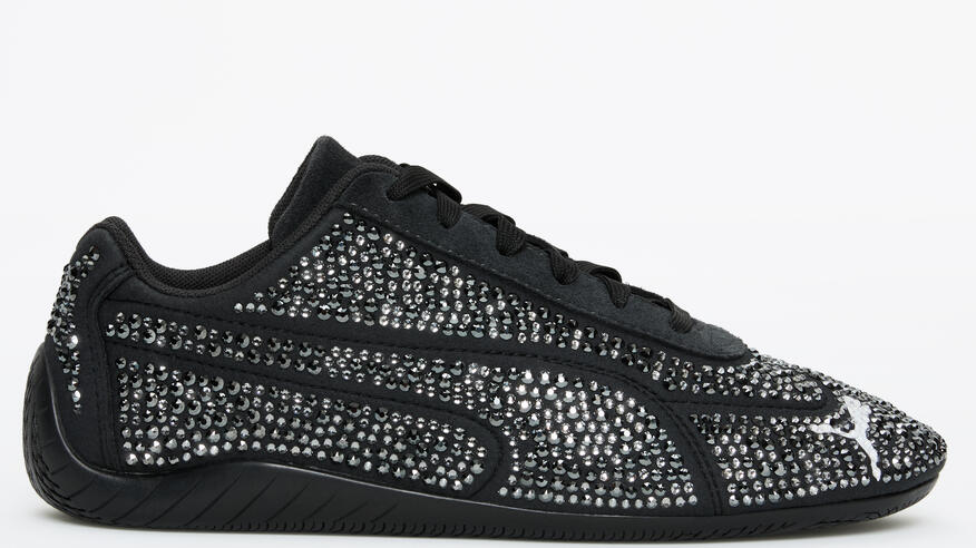 PUMA launches a limited-edition Speedcat to celebrate Swarovski’s 130-year anniversary. Harnessing the power of light, the iconic silhouette is transformed with a dazzling display of crystals and reimagined with elevated detailing. This unique design reflects a shared commitment to craftsmanship, sport, and joyful extravagance.